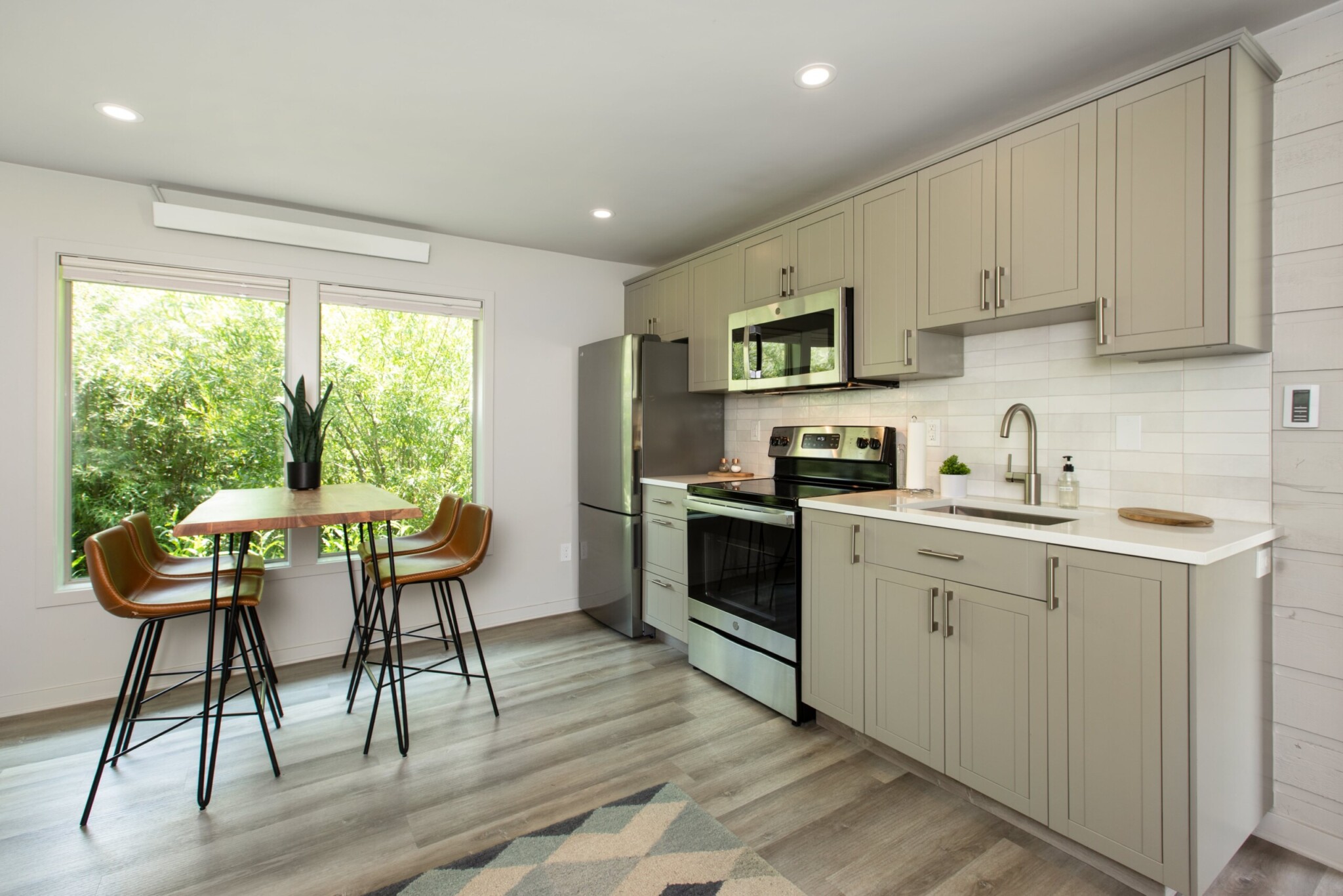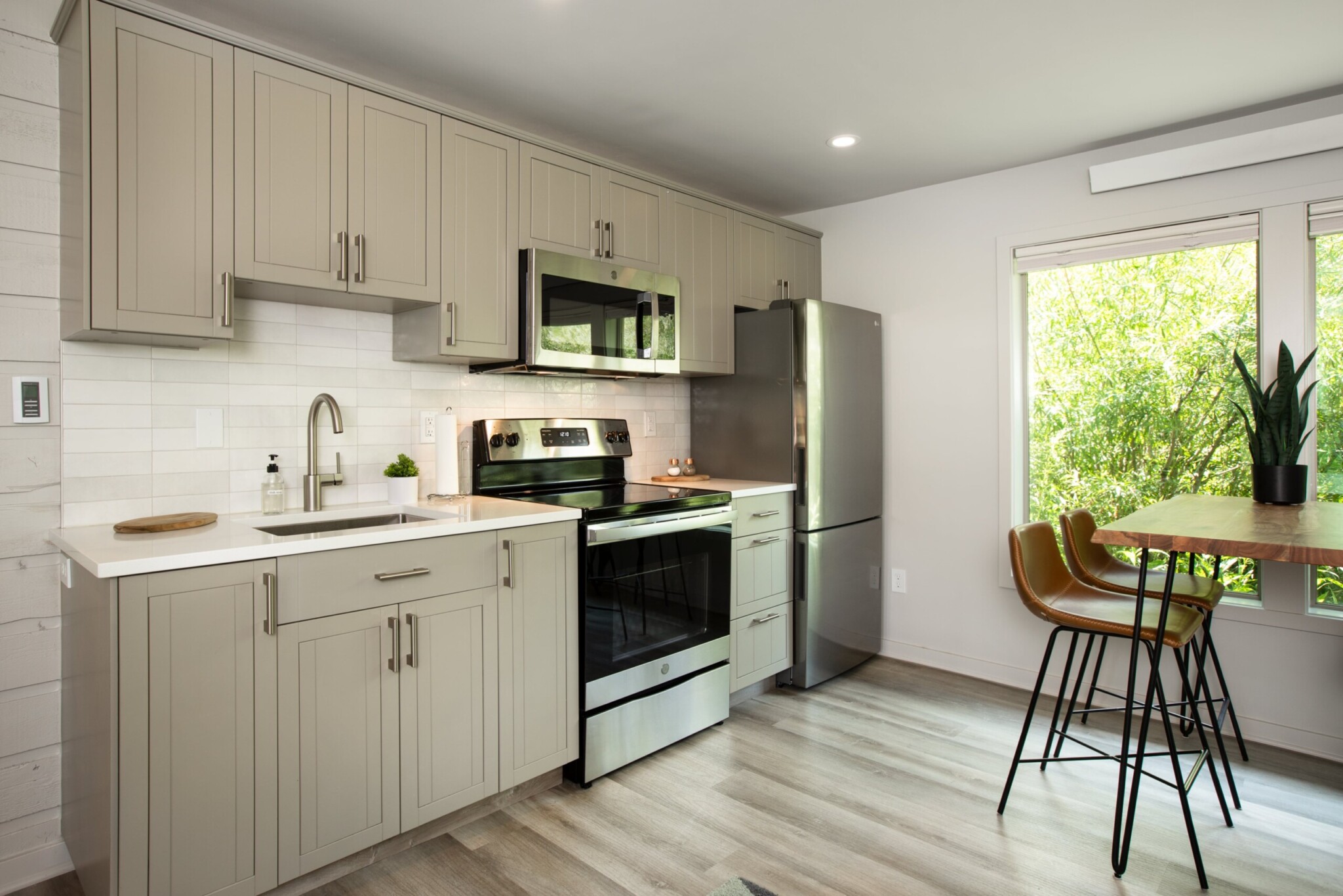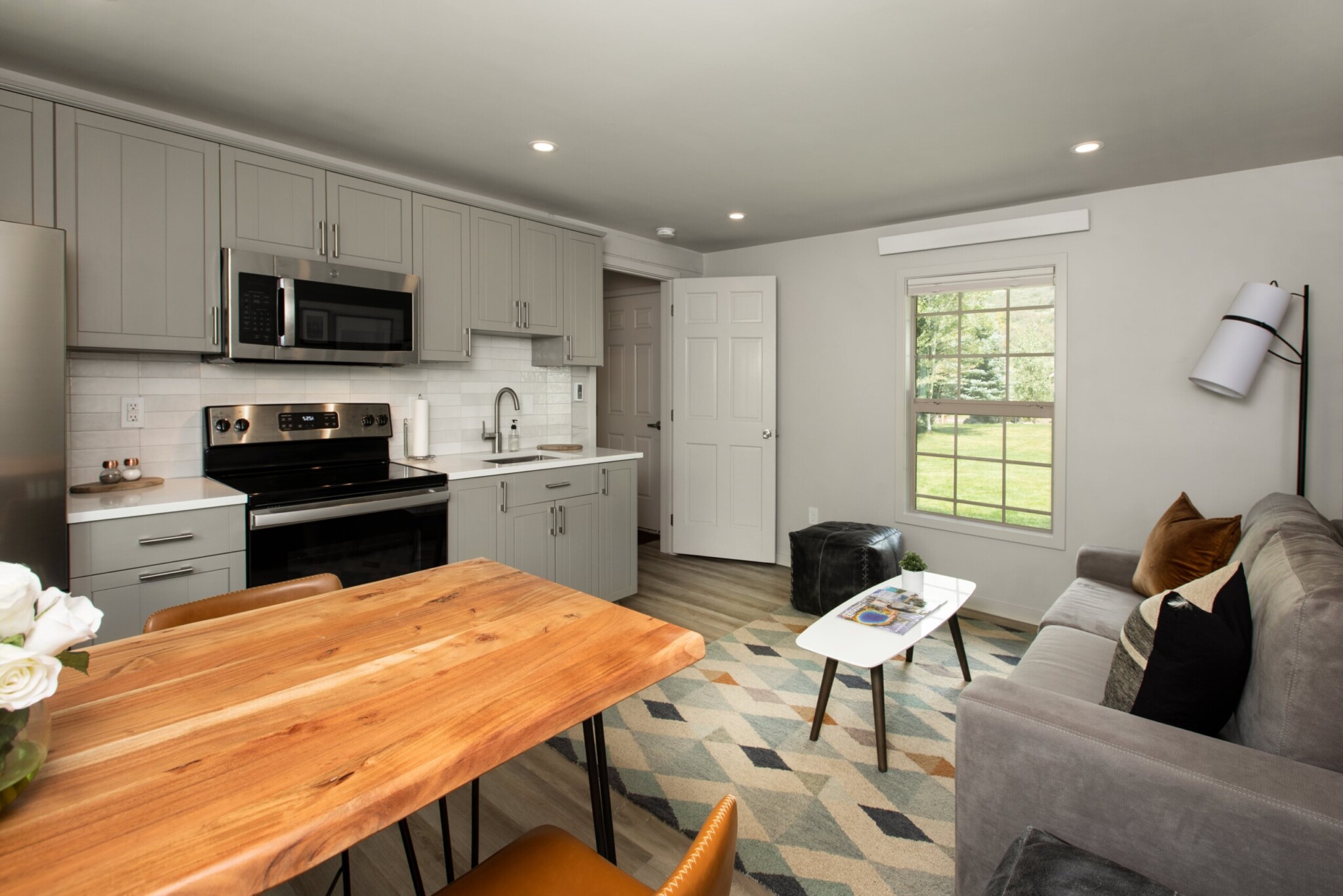 These newly renovated units have a rustic modern feel and bring all the comforts of home to your travels. Perfect for small families or small groups of friends, these units are equipped with a full kitchen, private bathroom, and living area. These units serve as a peaceful sanctuary after a busy day exploring the national parks or skiing at Jackson Hole Mountain Resort. Enjoy a mountain view from your Adirondack chair and listen to the creek gurgling nearby.
