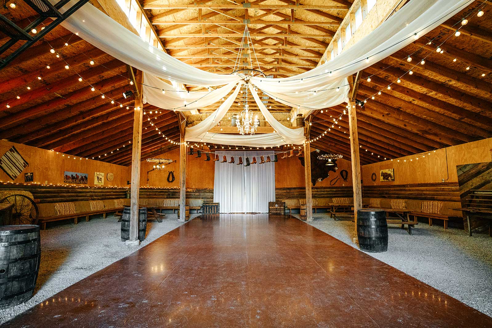 This Historic Log Barn provides ample open space for a wedding reception or large group gathering. The barn is equipped with a rustic wood stove, dance floor and is perfect for gatherings in summer or winter.
