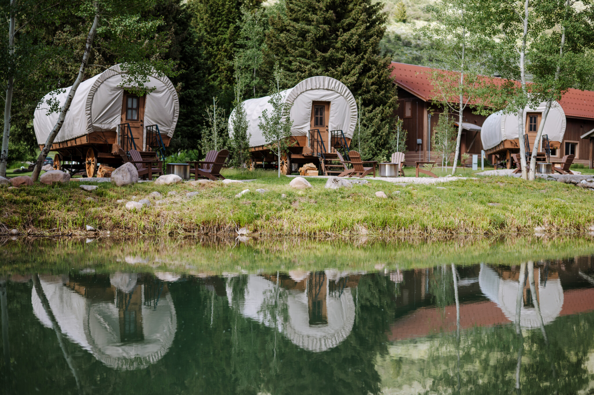 Our Conestoga Wagons offer an on-grid glamping experience, complete with electricity, running water, heat, A/C, full bathroom and Wifi. Stay close to the outdoors while enjoying modern conveniences.