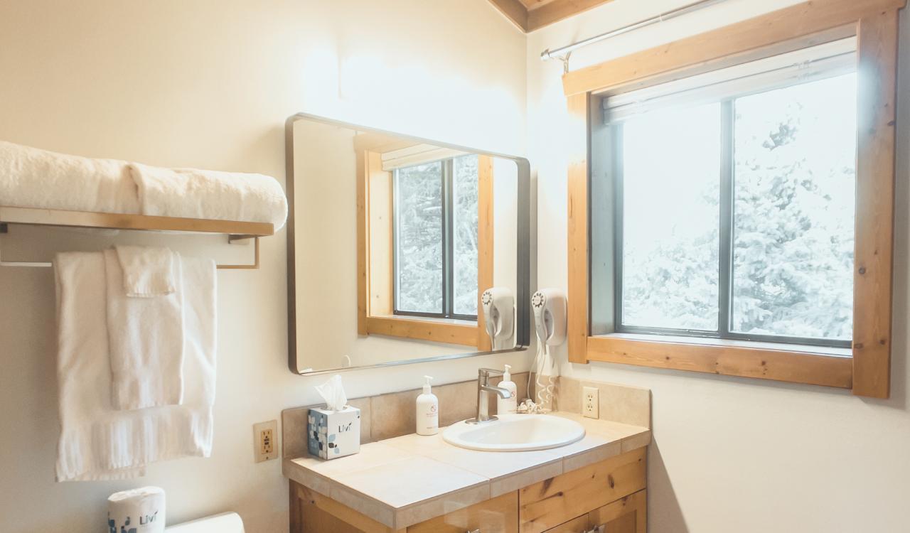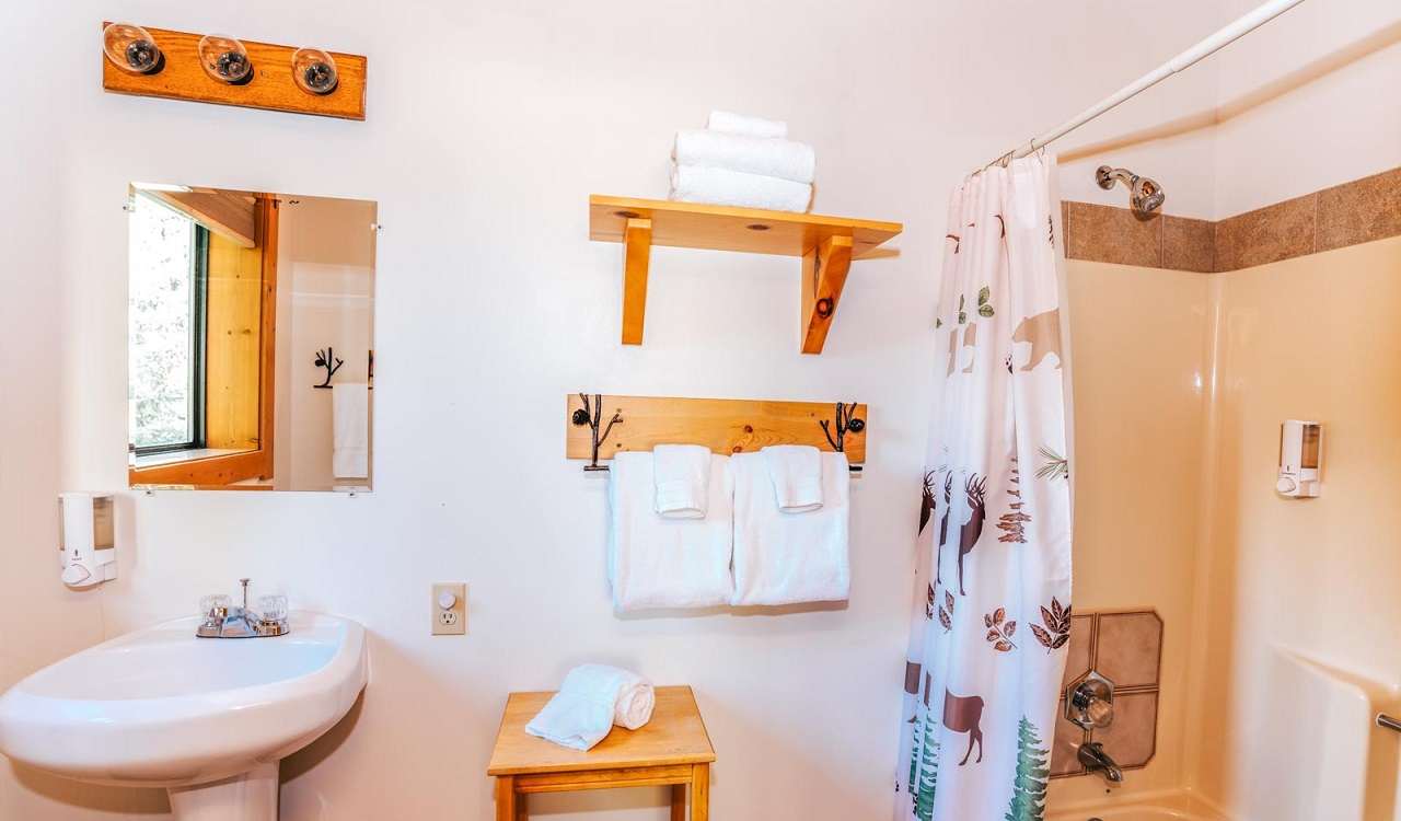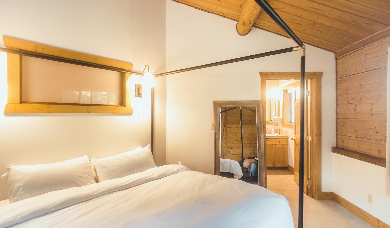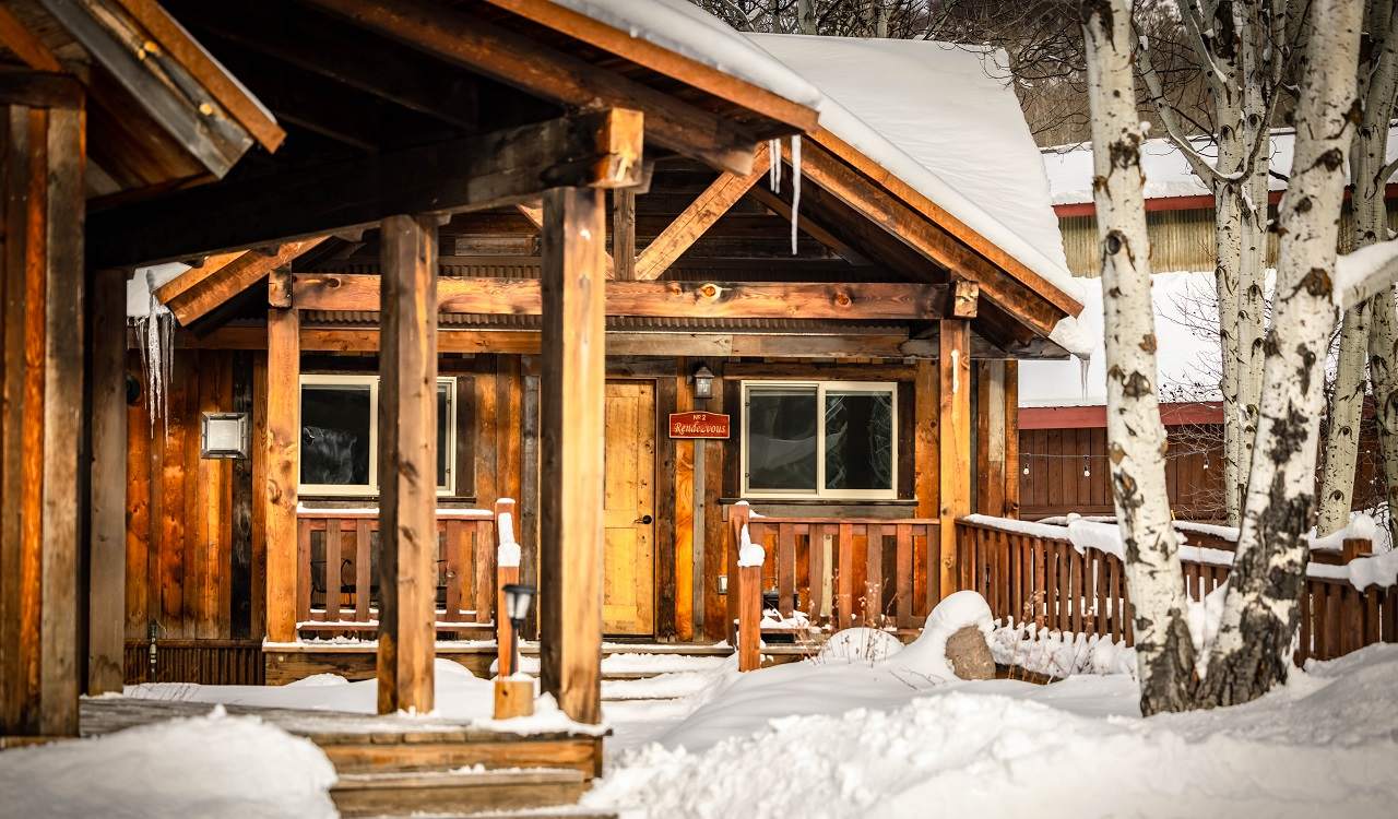 We have two Rendezvous Cabins available for guests that are perfect for couples or families. Our guests have dubbed one cabin our “honeymoon suite” as it comes complete with 1 king bed and a soaking tub. Our second cabin can sleep up to four with 2 queen beds and is ADA-compliant. Spend this winter in luxury while you warm up next to a toasty gas fireplace.